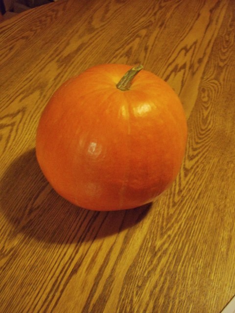 You can also use all purpose pumpkins that are grown for baking or jack-o-lanterns. But, the great big ones have a lot of liquid in them and your baked goods don’t turn out quite as well .