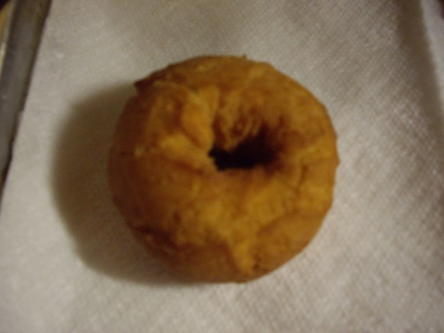 You will also need a donut cutter. If you don’t have one and don’t want to buy one, you can use a a 15 oz can that has been washed out and has both ends cut off. For the donut holes, use a plastic bottle cap- about the size of a soda pop cap.