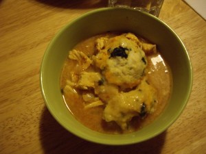 Dumplings are done when you poke them with a toothpick and the toothpick comes out clean.