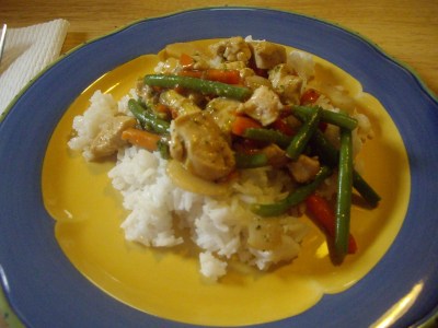 2 cups frozen stir-fry vegetable mix OR 2 cups of whatever fresh vegetables you want