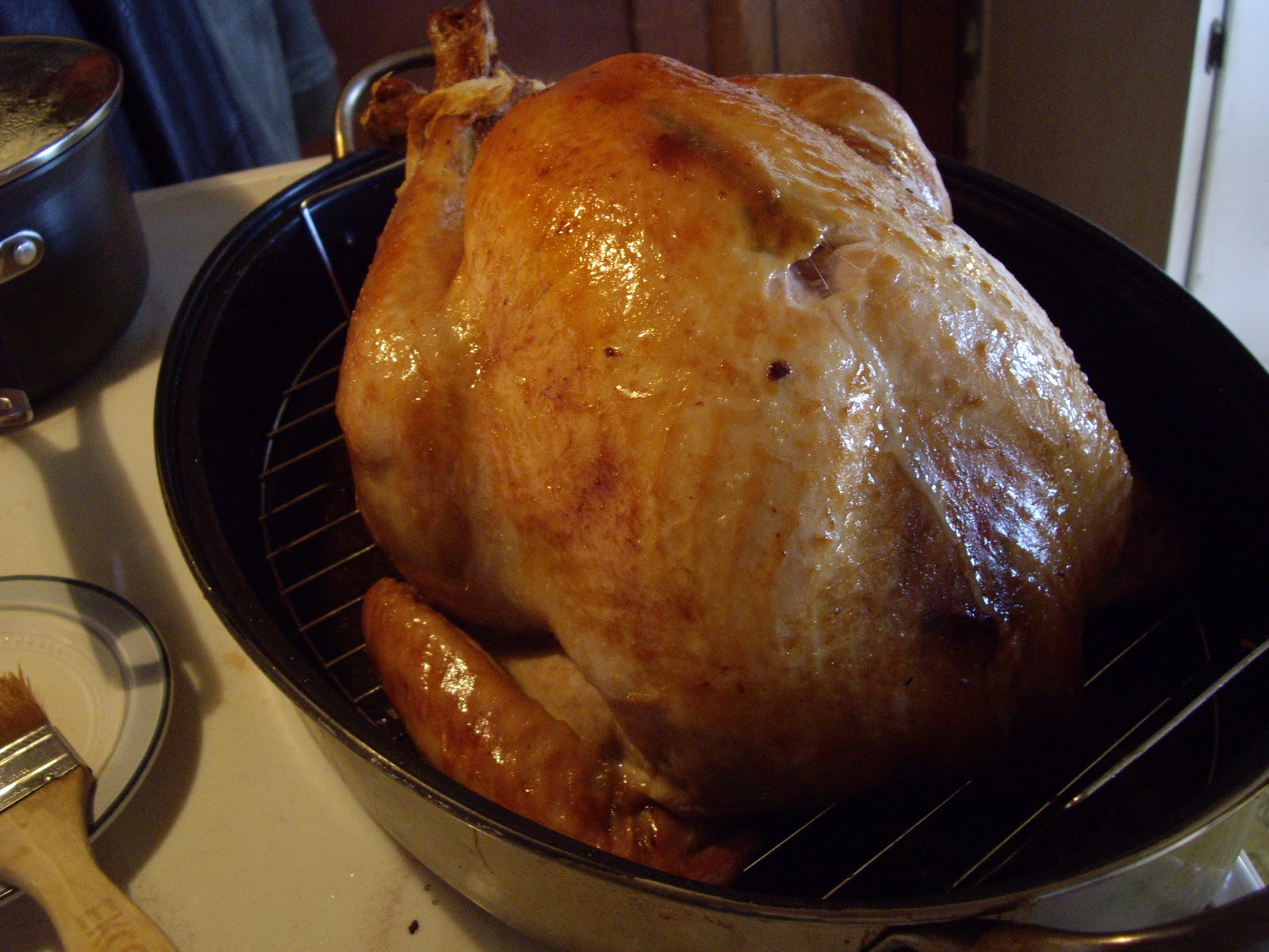 With a turkey baster, pastry brush, or spoon, baste the turkey every 20-30 minutes.