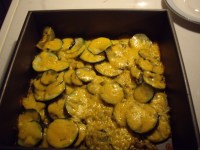 Add eggs to your mixing bowl and beat well. Add the sugar and oil and beat together. Next add in the creme de cocoa or extract and the cocoa powder. Once that is blended in, add the zucchini. Mix in the flour, salt, cinnamon, and baking powder. Stir in the chocolate chips.